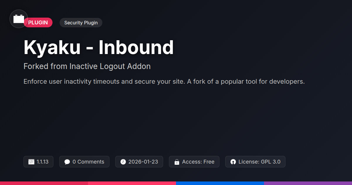 | Tags | email capture, auto logout plugin, idle user logout, inactivity logout, user session security, website security enhancement, digital product sales email, mobile forum optimization, Sales, Analytics, Tracking, Conversions, Inbound, lead generation, crm, clean shop design, profile tab builder, IT-tech fork, Forms, marketing, member communication plugin, user role visibility, user contact form |