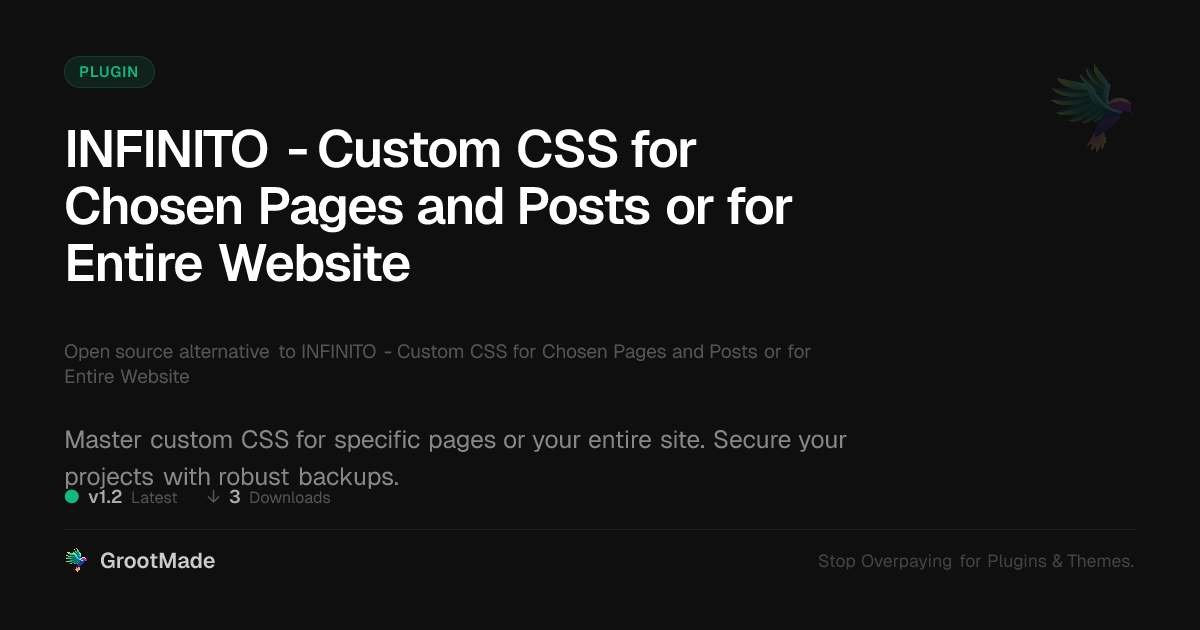| Forked from | INFINITO - Custom CSS for Chosen Pages and Posts or for Entire Website |
