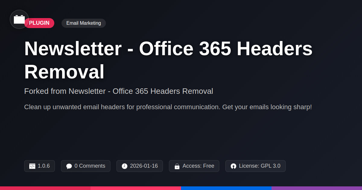 GrootMade is not affiliated with Newsletter - Office 365 Headers Removal and provides an open-source alternative.