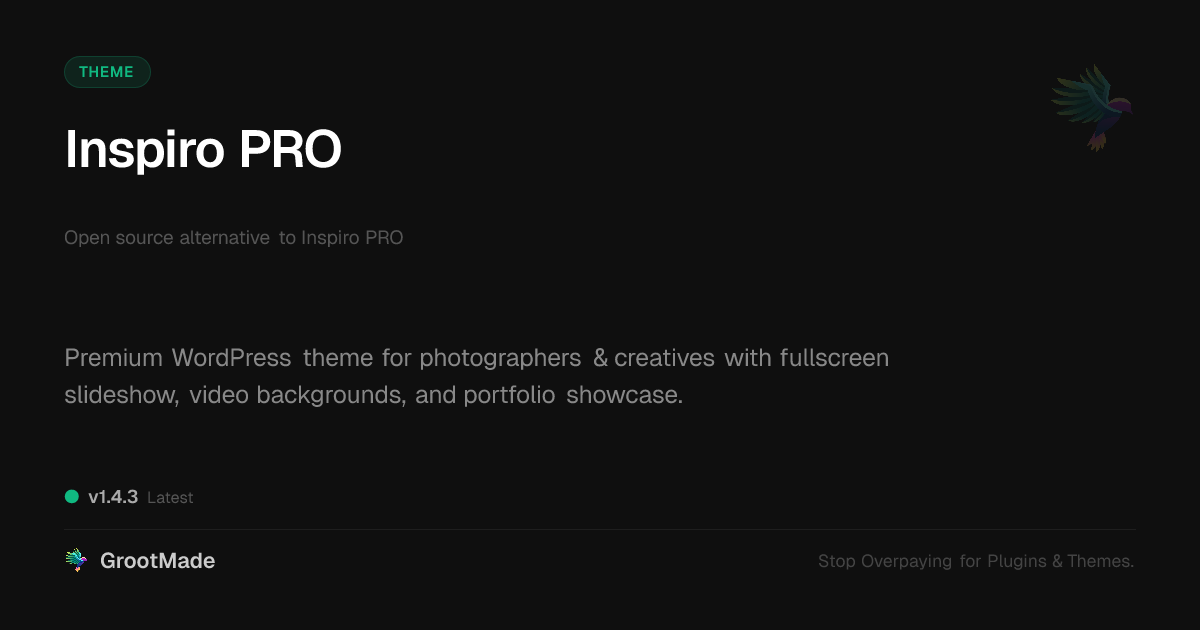 | Tags | photography, software beta testing, Multimedia, Video, Fullscreen, online community safety, member profile enhancements, creative, portfolio, WP community tools, responsive, business, member communication plugin, user contact form, minimal, modern |