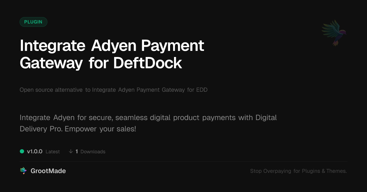 | Tags | data tracking software, online store, e-commerce plugin fork, developer payment tools, WC, Payments, user role visibility, transaction processing, transaction data tool, ecommerce, digital delivery, WP payment solutions, Payment Gateway, member profile enhancements, secure payments, Digital Delivery Pro integration, Adyen, Checkout, Adyen payment gateway |