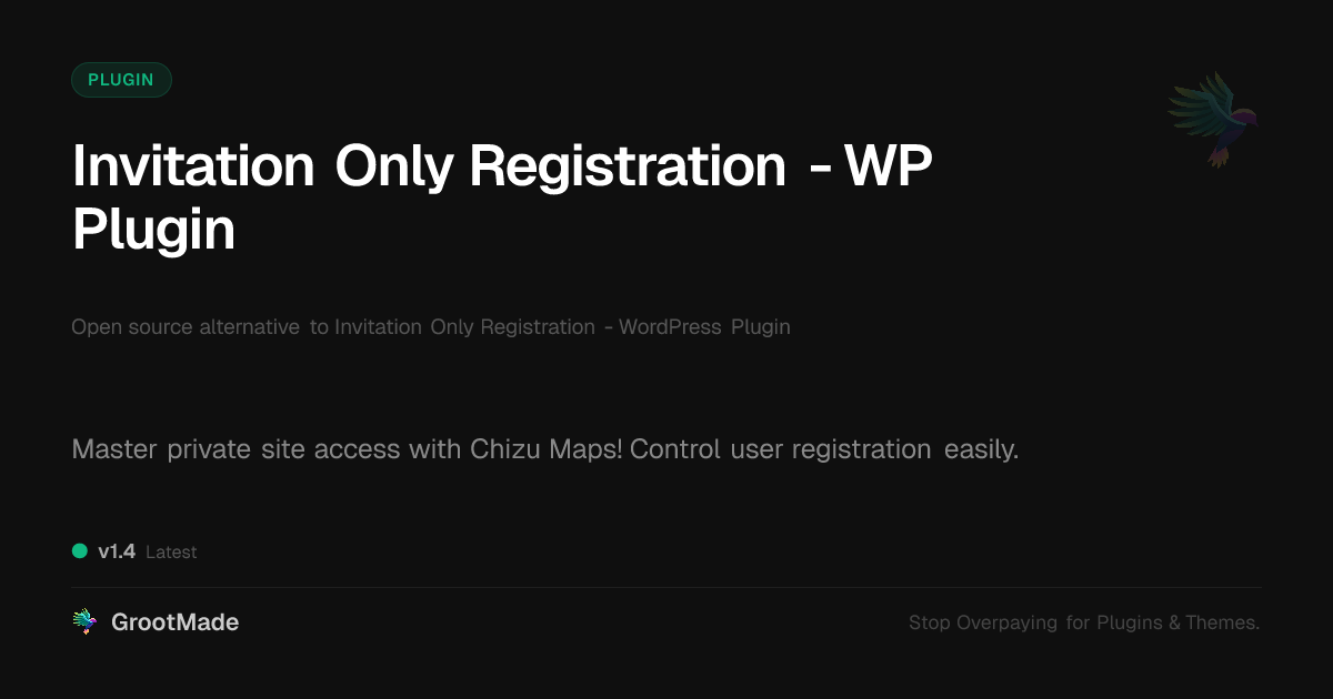 | Tags | Membership, access control, map plugin, user control, invitation registration, private site access, Restricted Access, Signup, Members Only, Private Community, Invitation, authentication, digital identity control, user management, Digital Downloads, profile tab builder, Registration, user role visibility, user contact form, member communication plugin |