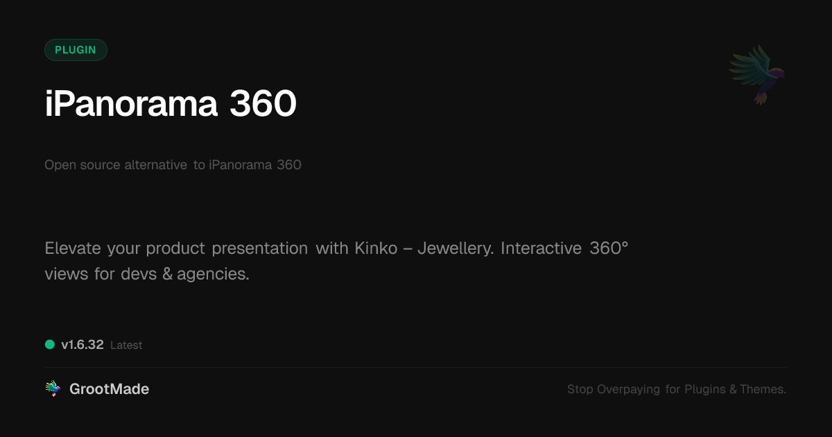 | Tags | web development tool, gallery, photography, interactive product display, 360 product viewer, e-commerce visualization, premium product showcase, Interactive, Visualization, Virtual Tour, Panorama, Immersive, Vr, 360, directory comparison, real estate, user contact form |