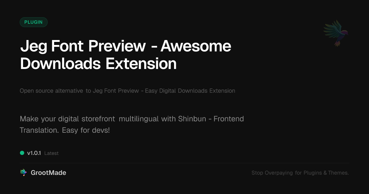 GrootMade is not affiliated with Jeg Font Preview - Easy Digital Downloads Extension and provides an open-source alternative.
