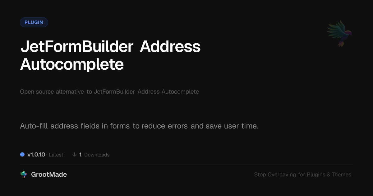 GrootMade is not affiliated with JetFormBuilder Address Autocomplete and provides an open-source alternative.