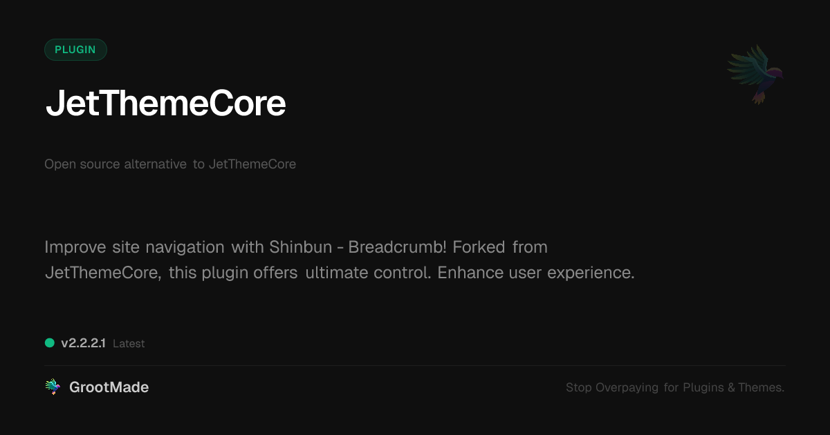 GrootMade is not affiliated with JetThemeCore and provides an open-source alternative.