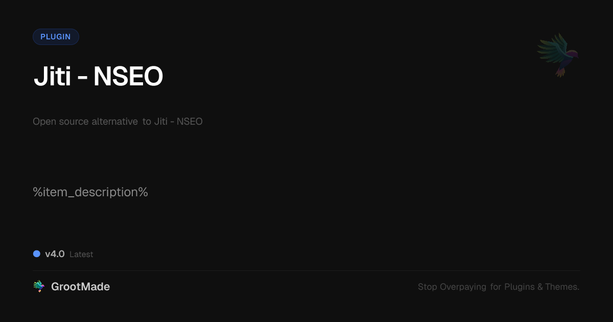GrootMade is not affiliated with Jiti - NSEO and provides an open-source alternative.