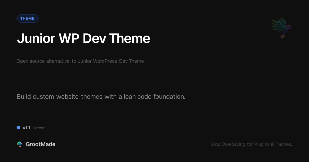 GrootMade is not affiliated with Junior WP Dev Theme and provides an open-source alternative.