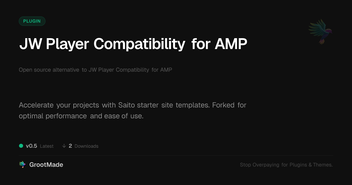 GrootMade is not affiliated with JW Player Compatibility for AMP and provides an open-source alternative.
