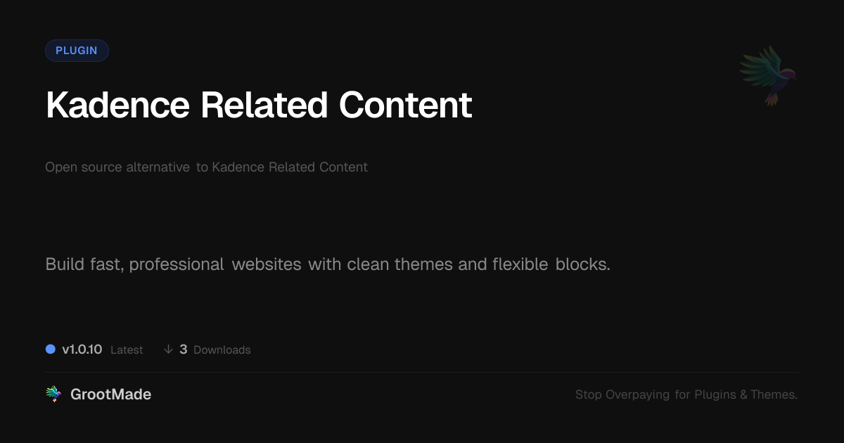 GrootMade is not affiliated with Kadence Related Content and provides an open-source alternative.