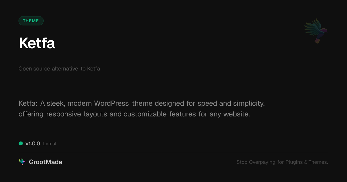 No Affiliation: We are providing a redistributed/forked version of this Theme in accordance with the GPL license. We are NOT affiliated with, sponsored by, or endorsed by WP, WC, Automattic Inc., or the original creators of this product.