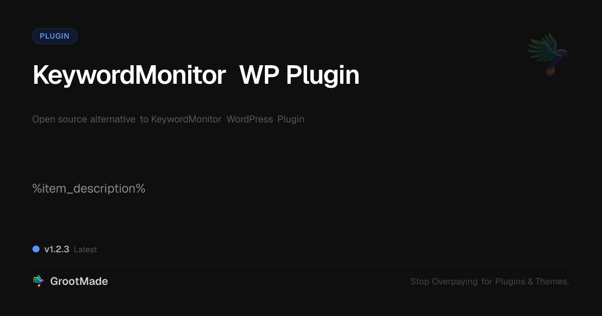 GrootMade is not affiliated with KeywordMonitor WP Plugin and provides an open-source alternative.