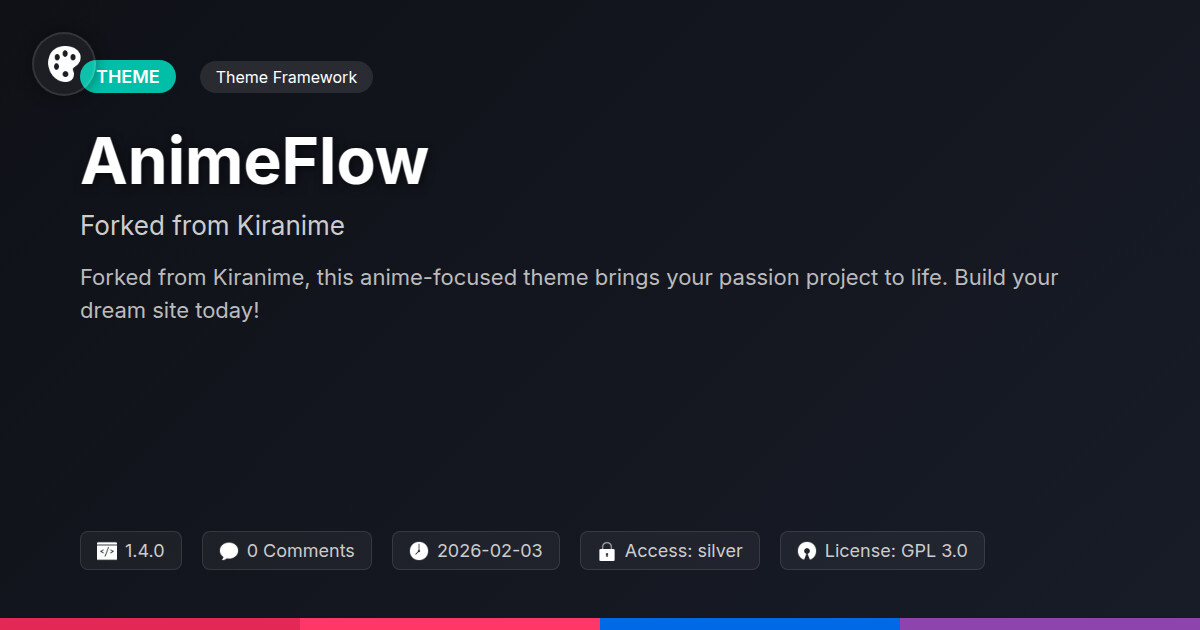 | Tags | content display plugin, anime website theme, media gallery framework, streaming theme, download forms, early access software, sales data reporting, product likes plugin, Entertainment, Media, Manga, Videos, Anime, Japan, Otaku, Fans, streaming, online community safety, Digital Downloads, recent profile visitors, Community, downloadable product plugin |