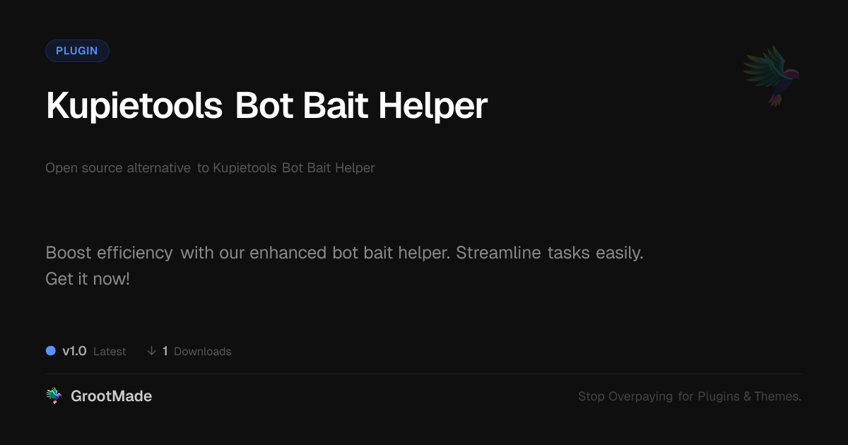 GrootMade is not affiliated with Kupietools Bot Bait Helper and provides an open-source alternative.