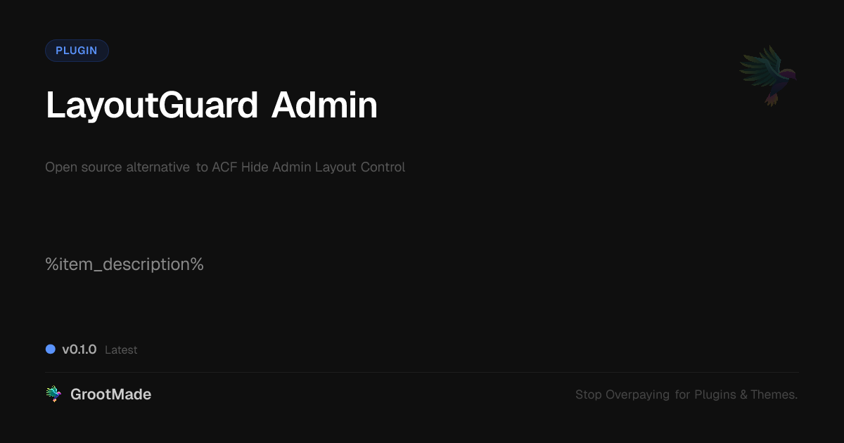 GrootMade is not affiliated with ACF Hide Admin Layout Control and provides an open-source alternative.