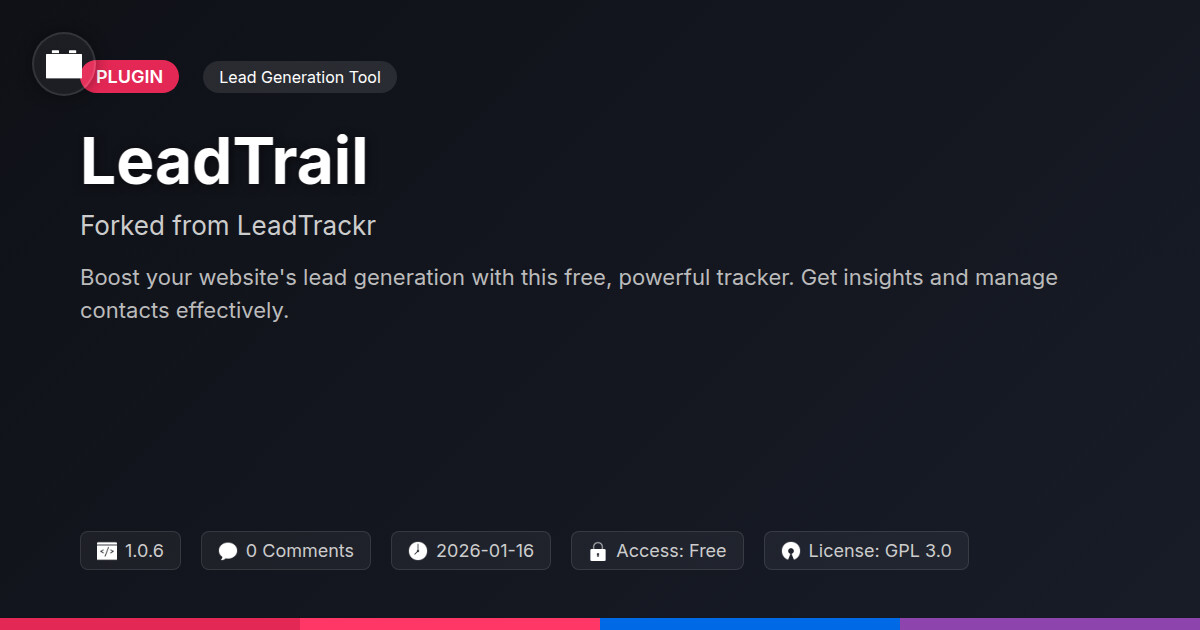 | Tags | website analytics, contact form, free plugin, lead tracking, lead management, digital product sales email, community forum acceleration, mobile forum optimization, Sales, Conversion, Analytics, Tracking, Leads, lead generation, crm, open source, online community safety, profile tab builder, IT-tech fork, marketing, user role visibility, member communication plugin, user contact form |