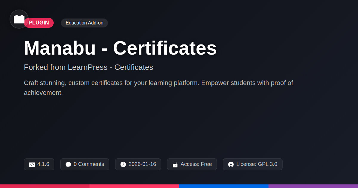 | Tags | digital certificates, online learning, education, student management, award certificates online, certificate builder, course certificates, education completion certificates, learning certificates, product roadmap, blog to product sales, Elearning, Achievements, Credentials, Certification, Certificates, Awards, profile tab builder, user contact form |
