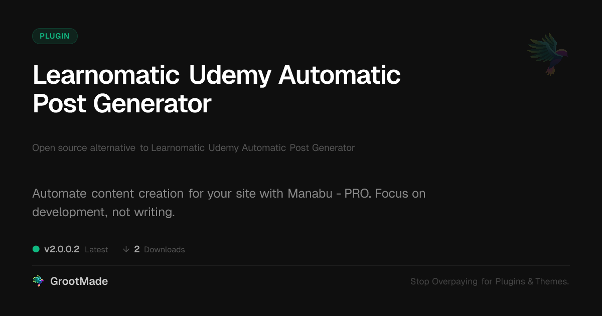 | Forked from | Learnomatic Udemy Automatic Post Generator |