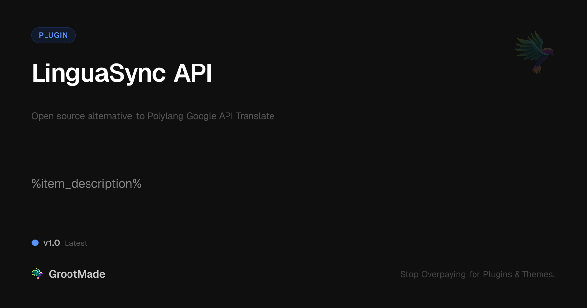 GrootMade is not affiliated with Polylang Google API Translate and provides an open-source alternative.