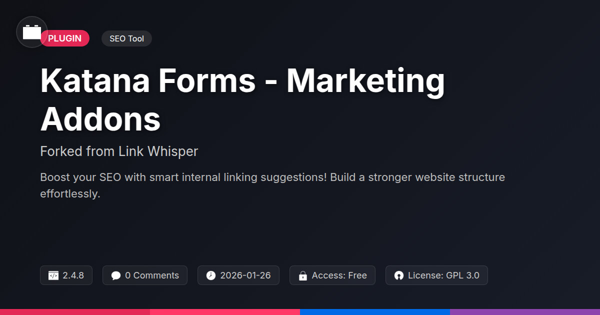 | Tags | site optimization, link management, crm integration, seo tools, internal linking, email marketing, payment status, Conversion Tools, lead generation, automation, Newsletter, contact forms, content strategy, member profile enhancements, clean shop design, profile tab builder, web design utility, form builder, Forms, marketing, member communication plugin, user role visibility |