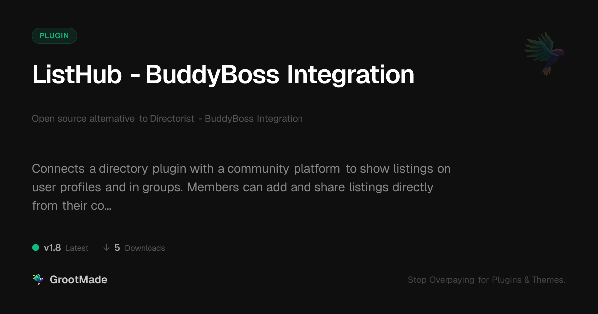 GrootMade is not affiliated with Directorist - BuddyBoss Integration and provides an open-source alternative.