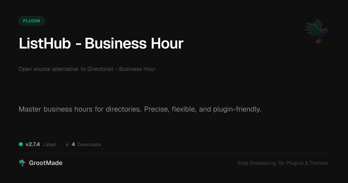| Tags | php developer tools, directory plugin, directory extension, business hours plugin, local business hours, open source listing, time management, business hours, wp scheduler, domain blocker, Scheduling, Listings, Directorist, Opening Hours, wp plugin, multilingual website plugin, online community safety, directory comparison, Business Directory, Working Hours, user role visibility |
