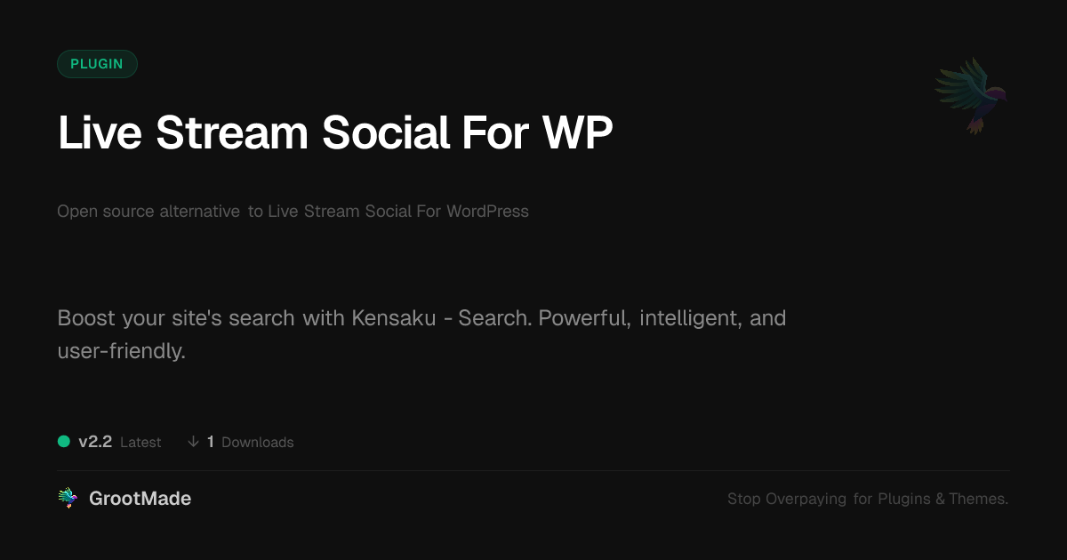 GrootMade is not affiliated with Live Stream Social For WP and provides an open-source alternative.