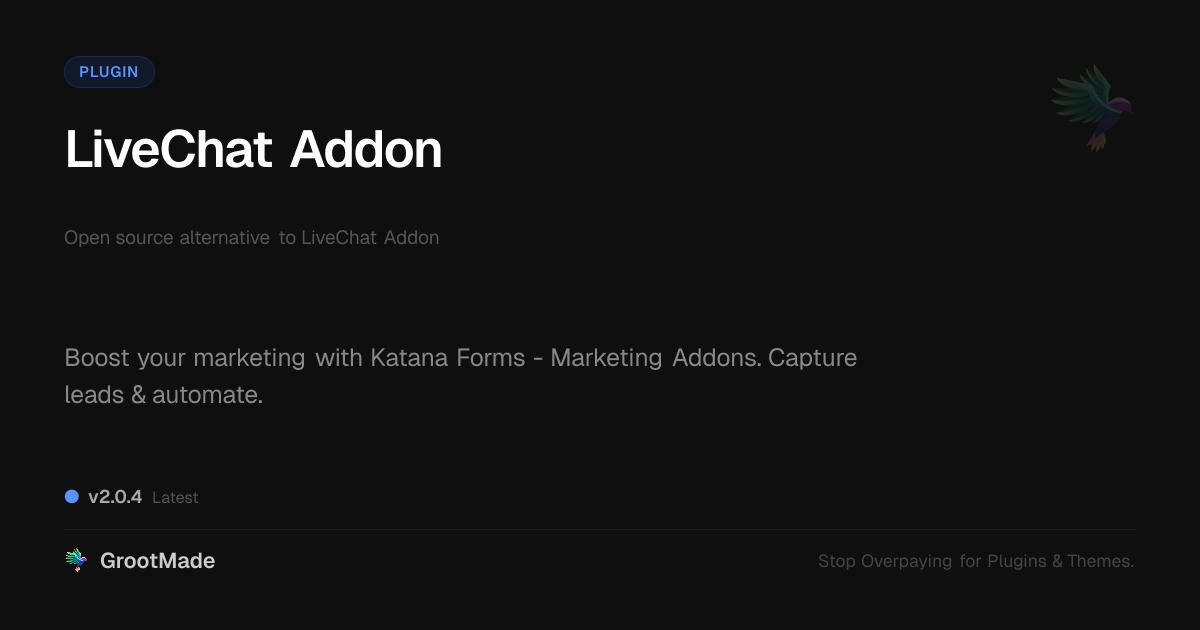 GrootMade is not affiliated with LiveChat Addon and provides an open-source alternative.