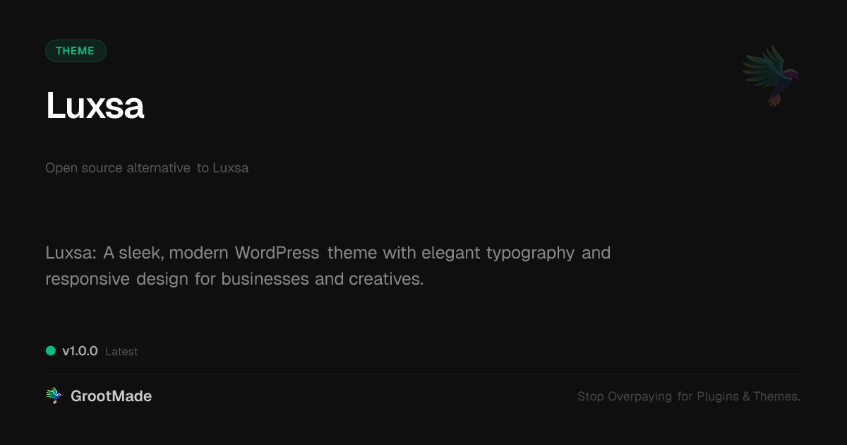 No Affiliation: We are providing a redistributed/forked version of this Theme in accordance with the GPL license. We are NOT affiliated with, sponsored by, or endorsed by WP, WC, Automattic Inc., or the original creators of this product.