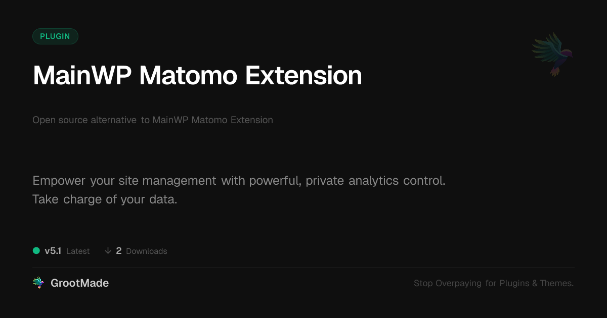 GrootMade is not affiliated with MainWP Matomo Extension and provides an open-source alternative.