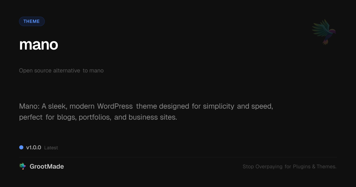 GrootMade is not affiliated with mano and provides an open-source alternative.