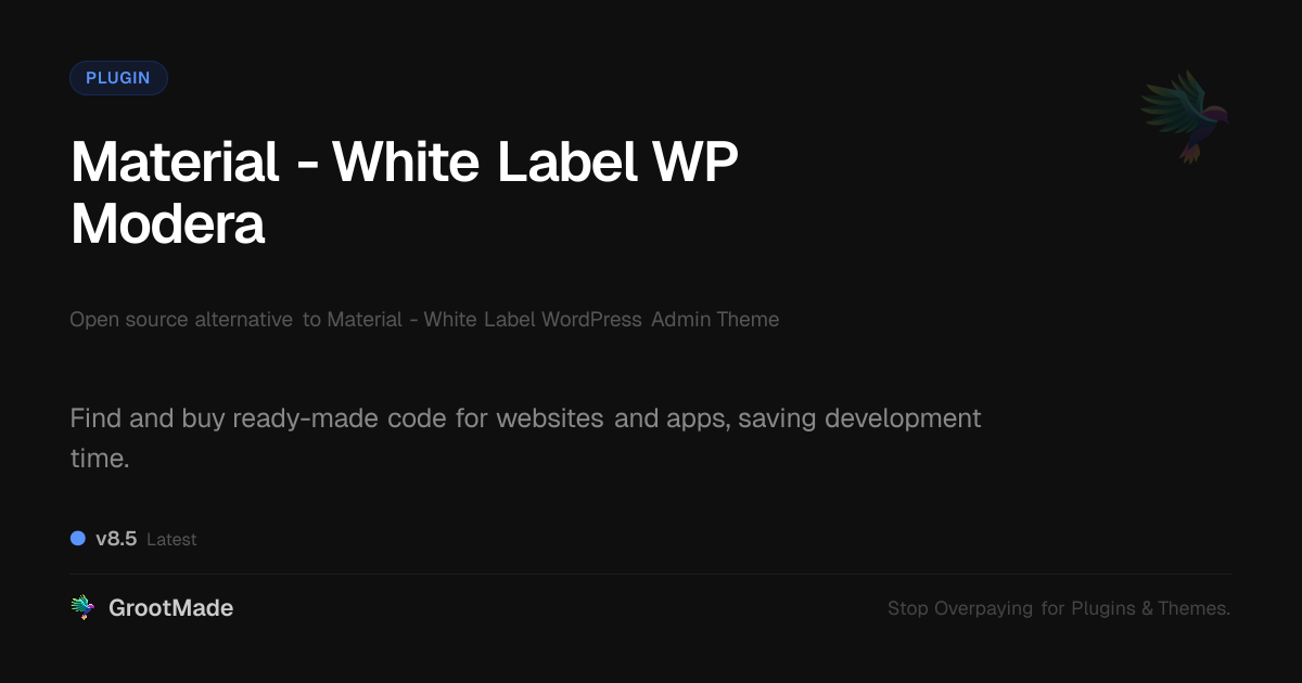 GrootMade is not affiliated with Material - White Label WP Admin Theme and provides an open-source alternative.