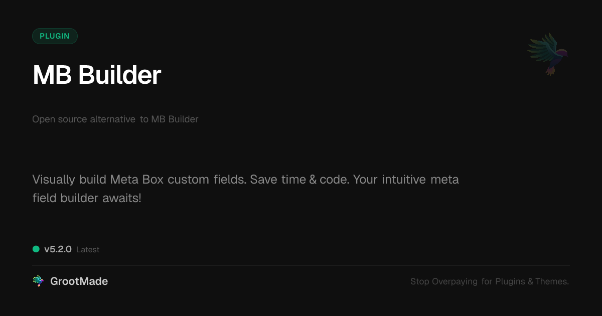 | Tags | drag and drop, visual meta box, Developer Tools, user role visibility, frontend editor, meta field construction, user contact form, custom fields builder, meta box visual builder, member communication plugin, dynamic content, theme builder, responsive design, website customization, online community safety, custom layouts, gallery plugin development, translation plugin add-on, page builder, visual editor, code-free meta fields |