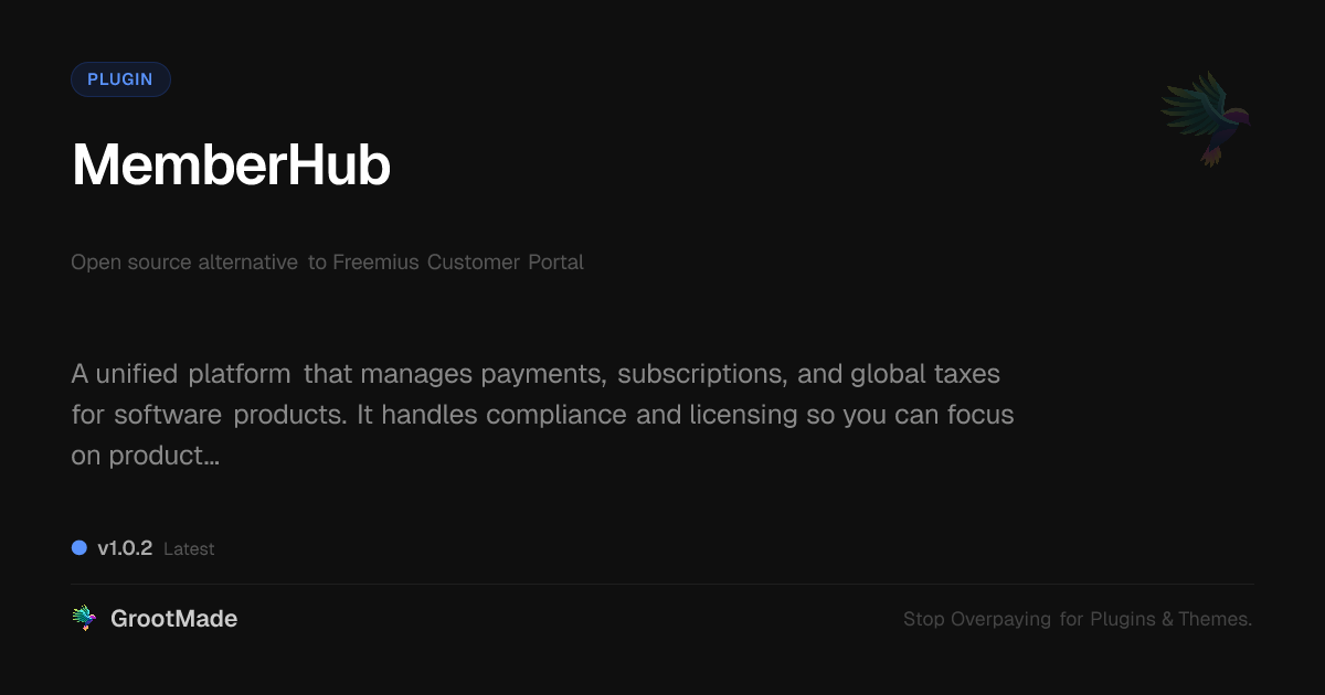 GrootMade is not affiliated with Freemius Customer Portal and provides an open-source alternative.