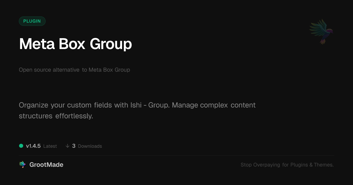 | Tags | custom post types, site building, WP development, advanced custom fields, content field management, custom field grouping, meta field organizer, meta box, WP community tools, gallery plugin development, Developer Tools, Metabox, Field Groups, WP Admin, content management, directory comparison, Digital Downloads, custom fields, user role visibility, user contact form |