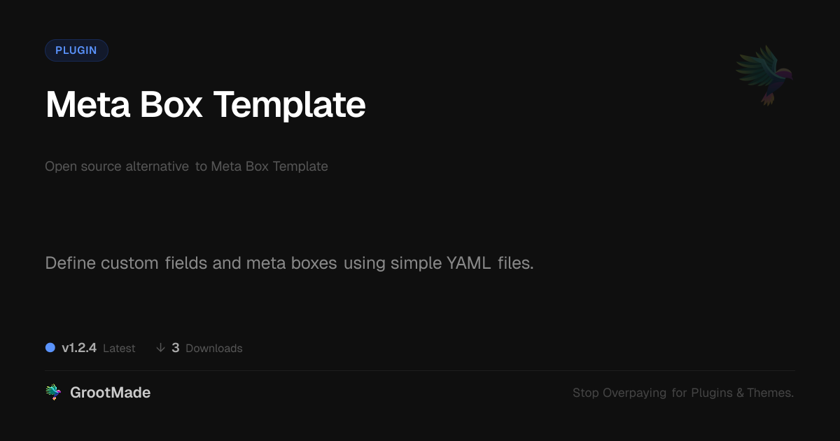 GrootMade is not affiliated with Meta Box Template and provides an open-source alternative.