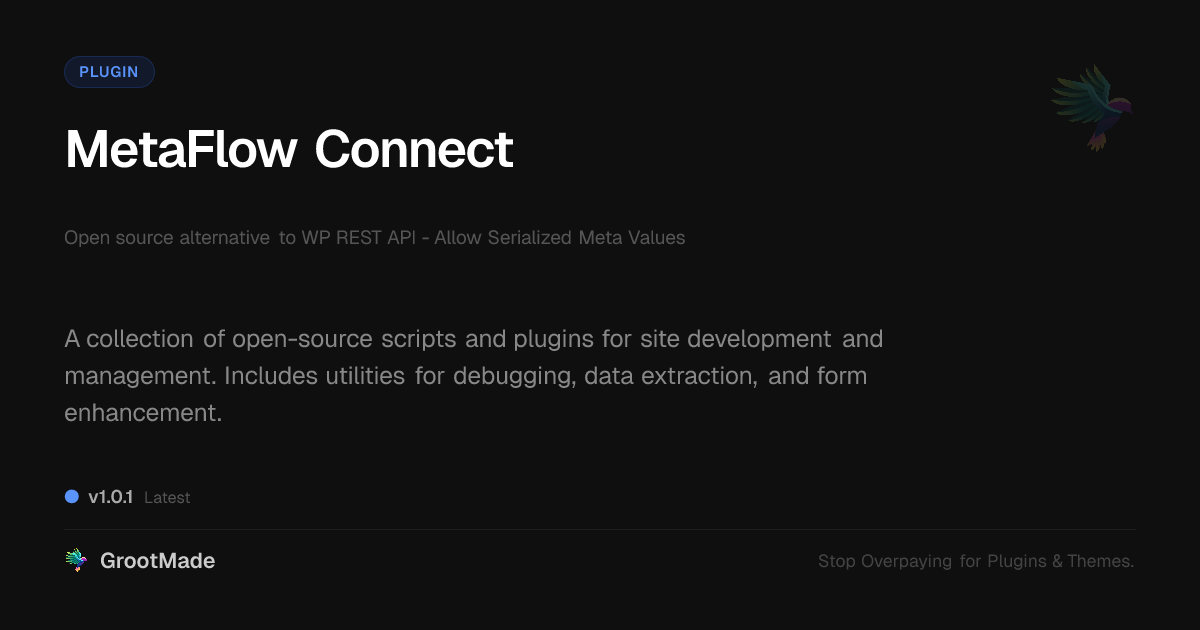 GrootMade is not affiliated with WP REST API - Allow Serialized Meta Values and provides an open-source alternative.