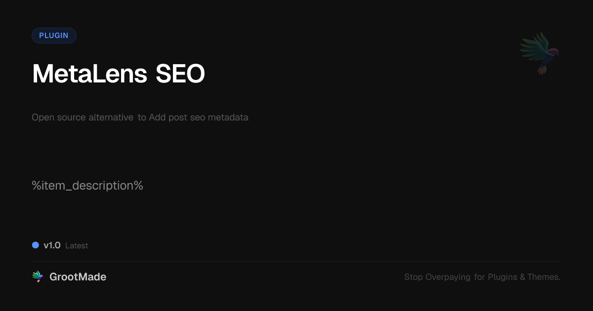 GrootMade is not affiliated with Add post seo metadata and provides an open-source alternative.