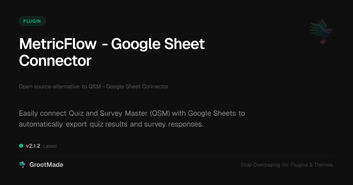 GrootMade is not affiliated with QSM - Google Sheet Connector and provides an open-source alternative.