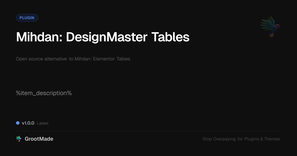 GrootMade is not affiliated with Mihdan: Elementor Tables and provides an open-source alternative.