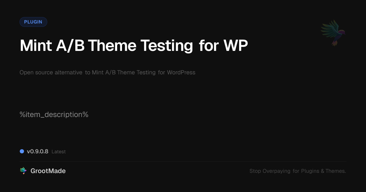 GrootMade is not affiliated with Mint A/B Theme Testing for WP and provides an open-source alternative.
