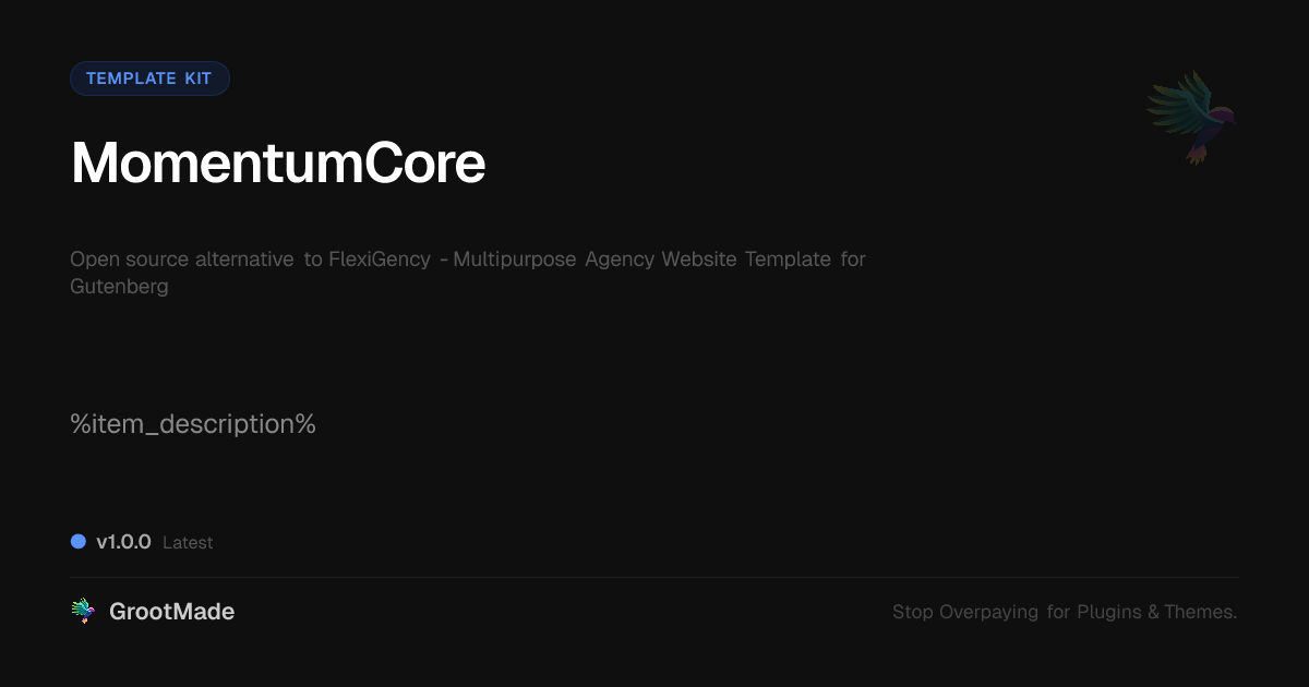 GrootMade is not affiliated with FlexiGency - Multipurpose Agency Website Template for Gutenberg and provides an open-source alternative.