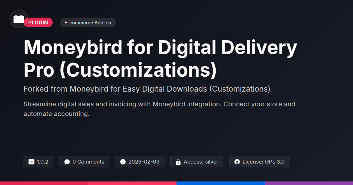 | Tags | digital delivery pro, order management, Moneybird, WC, user role visibility, payment reconciliation, Payment Processing, search enhancement tool, automation, invoice automation, Ecommerce, customizable invoicing, member profile enhancements, accounting integration, digital sales integration, Customizations, Invoicing, ecommerce accounting |