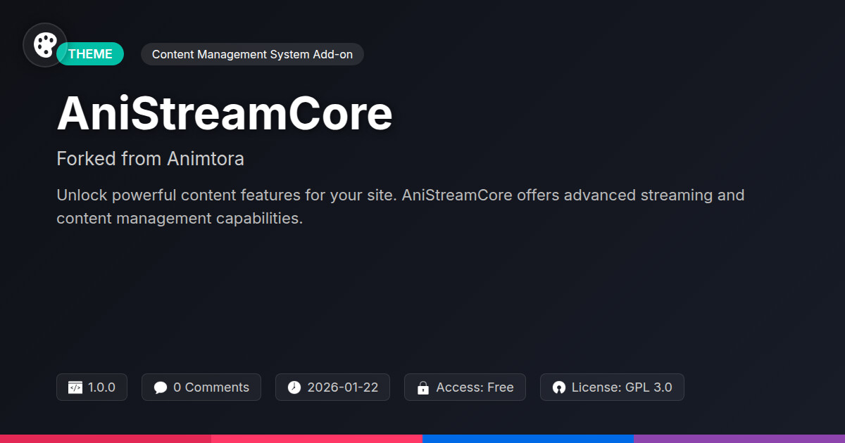 | Tags | designer, multimedia plugin, streaming solution, open-source CMS, visual effects, Multimedia, download integration, developer tool, animation, content management, portfolio, Lightweight, creative, customizable, modern, responsive, WP community tools |