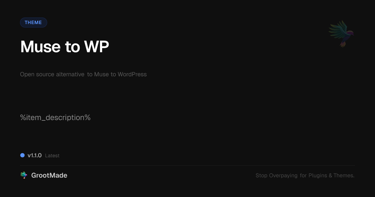 GrootMade is not affiliated with Muse to WP and provides an open-source alternative.