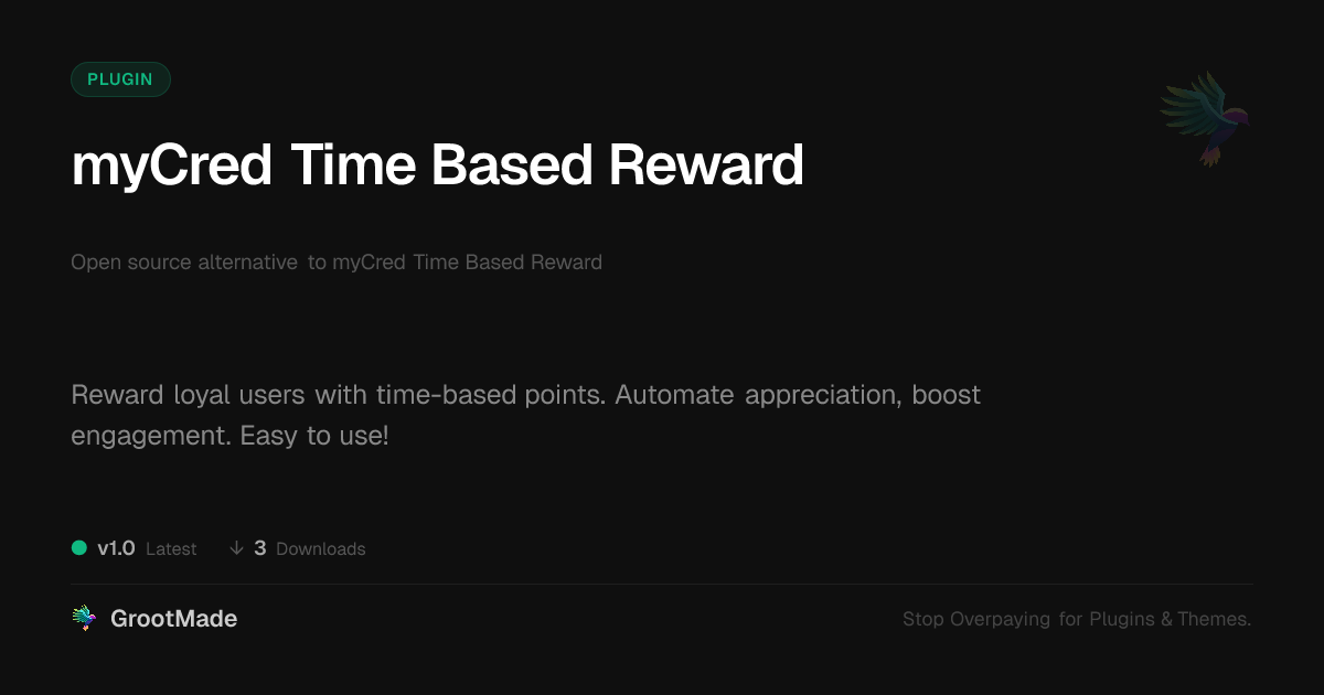 | Tags | Membership, user engagement plugin, user rewards, gamification add-on, time-based rewards, loyalty points system, community rewards, asset loading optimization, frontend performance boosters, website property listings, layered scrolling plugin, content security for websites, installments, quiz export import, Mycred, Points, Rewards, Engagement, Loyalty, Incentives, Time Based, gamification, profile tab builder |