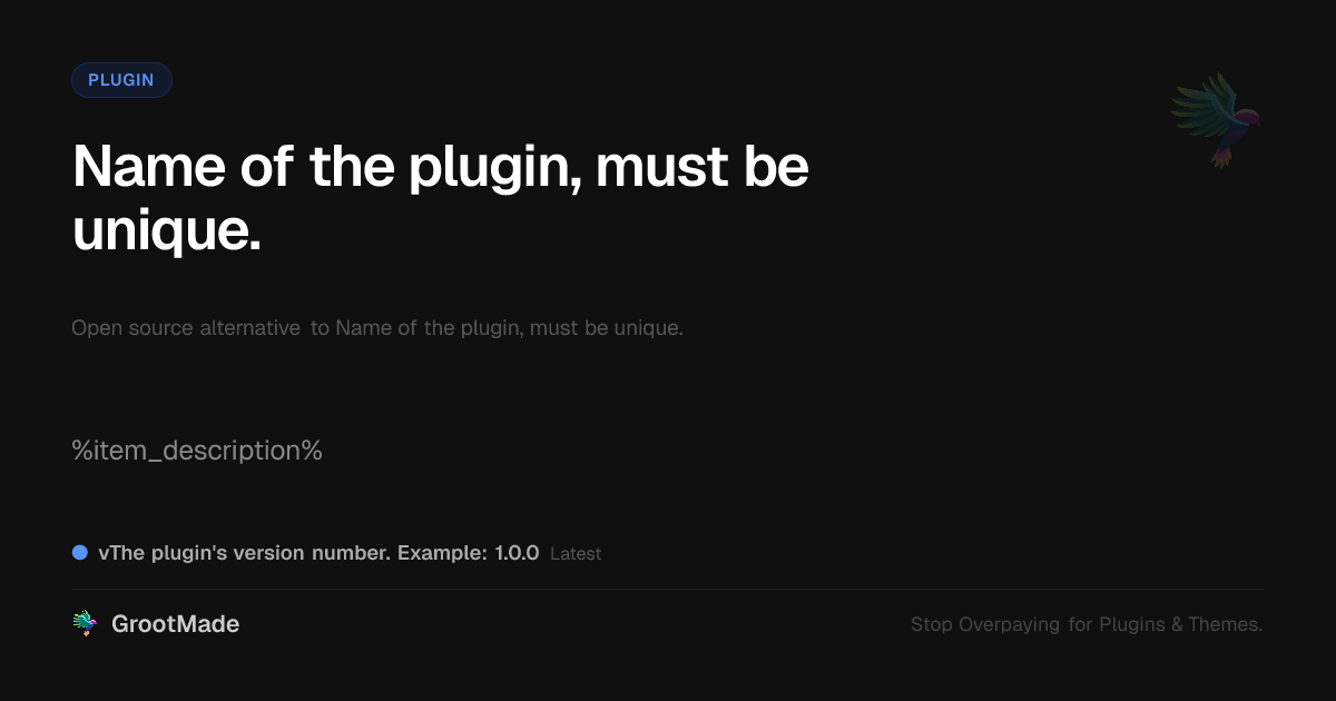GrootMade is not affiliated with Name of the plugin, must be unique. and provides an open-source alternative.