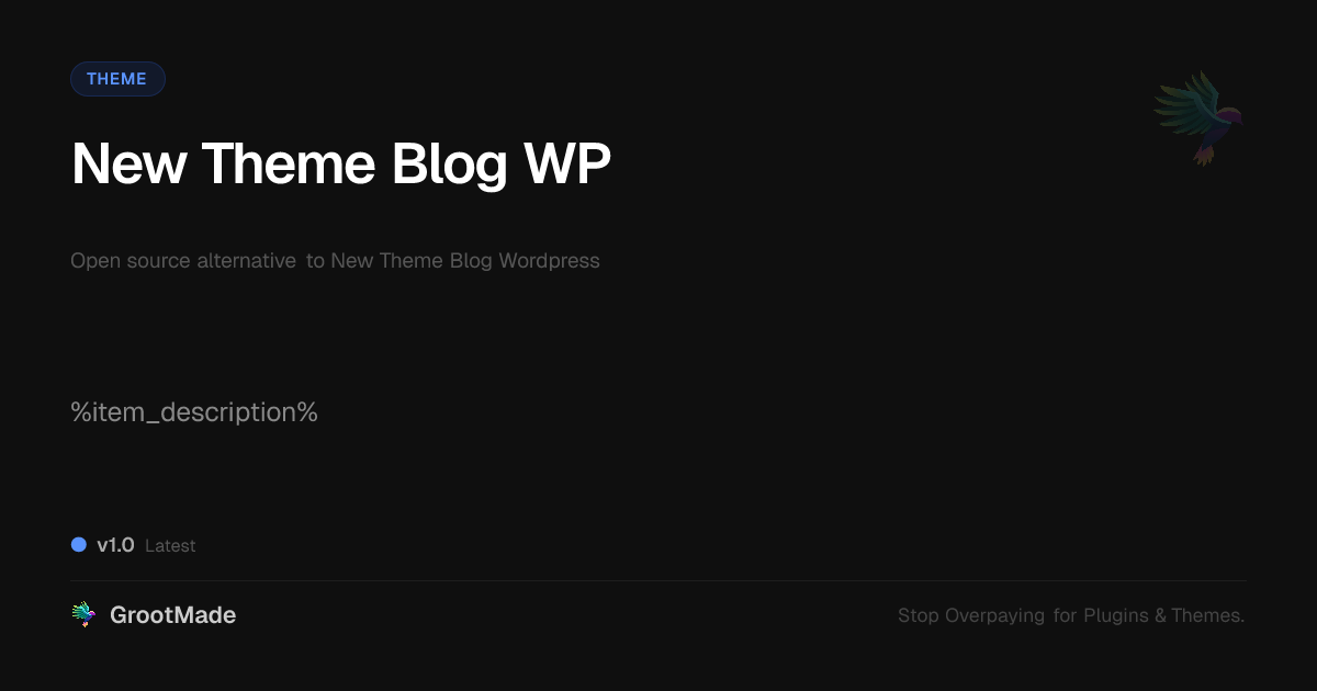 GrootMade is not affiliated with New Theme Blog WP and provides an open-source alternative.