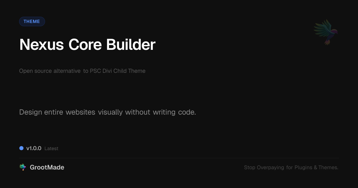 GrootMade is not affiliated with PSC Divi Child Theme and provides an open-source alternative.
