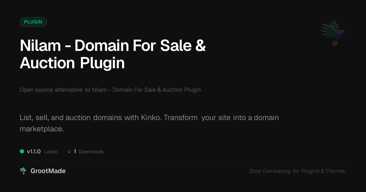 | Forked from | Nilam - Domain For Sale & Auction Plugin |